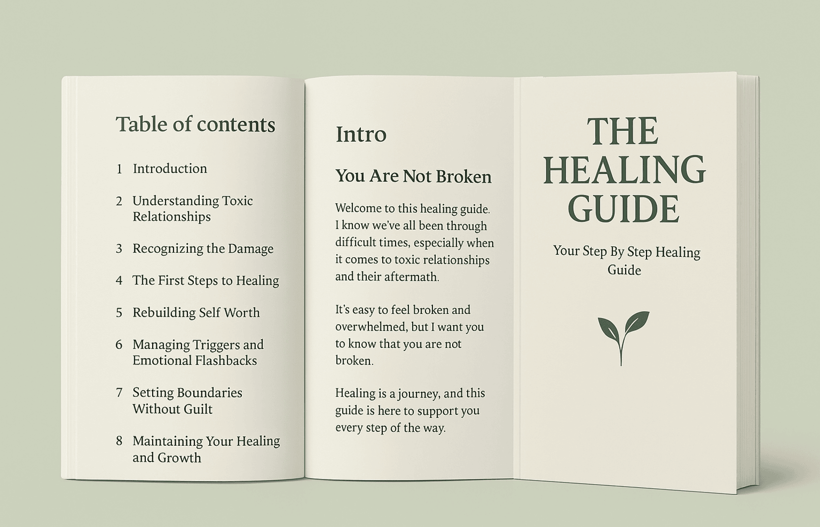 The Healing Guide gives you a clear, step-by-step path to reclaim your peace, confidence, and self-love. With 8 transformative chapters and a free healing workbook, you’ll gain practical tools to move forward and thrive emotionally.